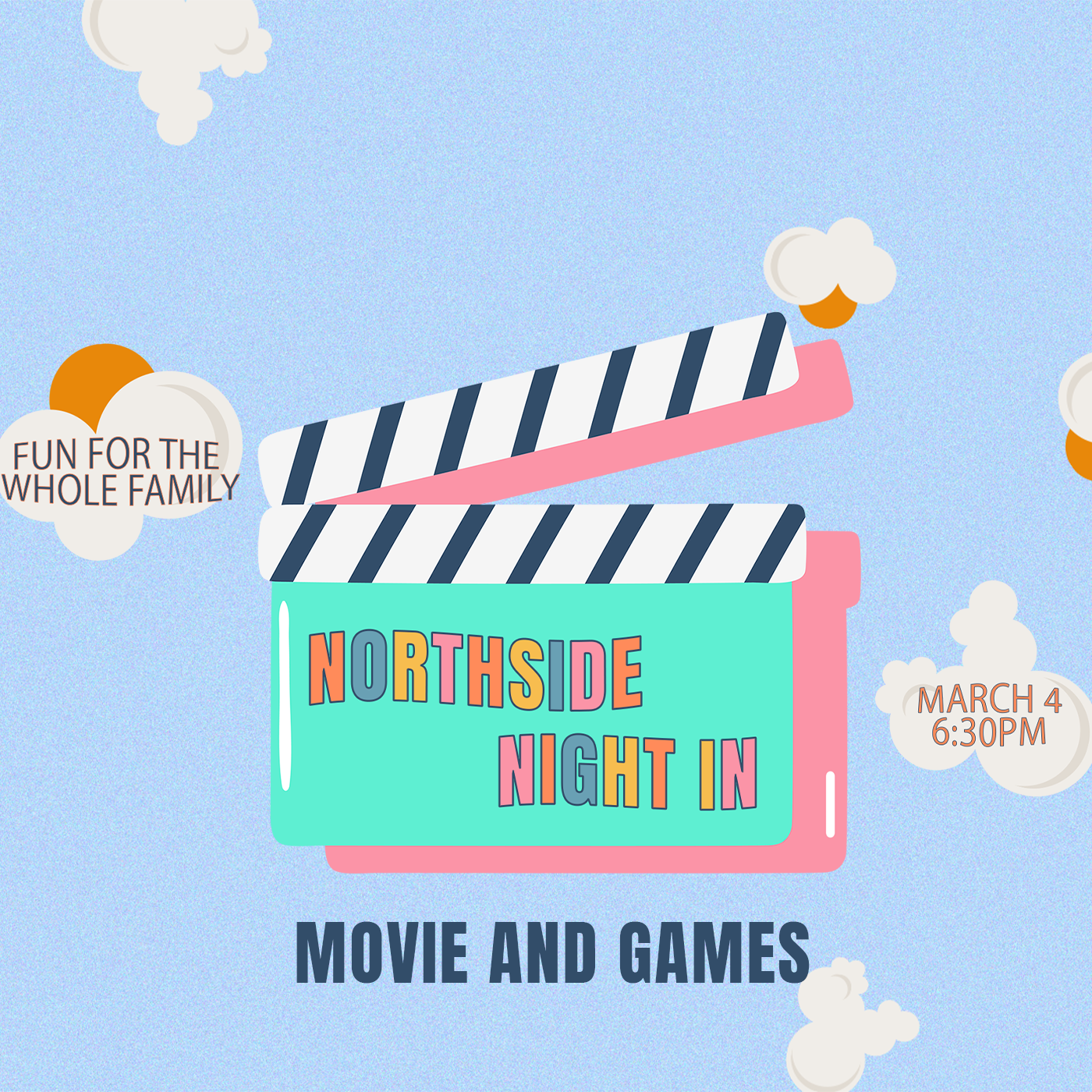 We’ll have a kid-friendly movie playing, games to enjoy together, and snacks provided. Pizza will be provided.